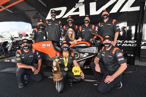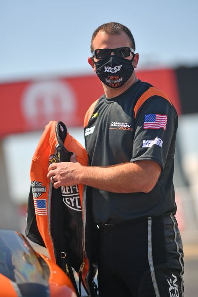 INDIANAPOLIS (August 09, 2020) – Harley-Davidson® Screamin’ Eagle®/Vance & Hines rider Angelle Sampey charged to a final-round win in Pro Stock Motorcycle competition at the Dodge NHRA Indy Nationals presented by Pennzoil at Lucas Oil Raceway in Indianapolis. The three-time Pro Stock Motorcycle champion (2000-2002) won for the 43rd time in her career two days after her 50th birthday. The victory is Sampey’s first in the class since 2016. She joined the Harley-Davidson® Screamin’ Eagle®/Vance & Hines drag racing team in 2019.