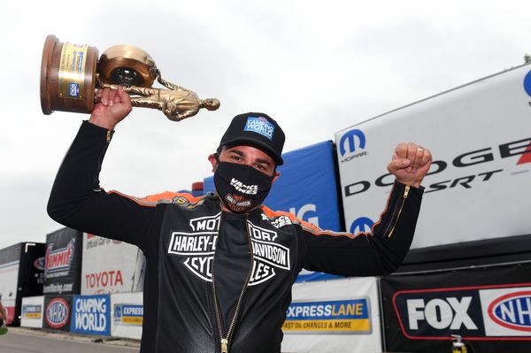 HOUSTON, Texas (October 26, 2020) – Harley-Davidson® Screamin’ Eagle®/Vance & Hines rider Ed Krawiec battled to a Pro Stock Motorcycle victory at the Mopar Express Lane NHRA SpringNationals presented by Pennzoil at Houston Raceway Park on Sunday. The win moves Krawiec into contention for his fifth NHRA Pro Stock Motorcycle championship with one event remaining on the 2020 schedule.