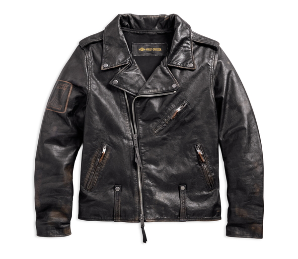 Constructed of lightweight cowhide, each of the Men's Master Distressed Slim Fit Leather Jacket (P/N 98003-18VM, $395*) and the Women’s Wild Distressed Leather Biker Jacket (P/N 98017-18VW, $375*) are one-of-a-kind with a wax finish that is tumble dried and hand-sanded for a rough-and-tumble, vintage look. Motorcycle jackets are as important to H-D as the road itself, so each jacket has unique treatments, precise laser-etched graphics and natural variations that add character to the jacket with every use. The natural variations and hand-finishing add to the truly authentic look and softer feel of the jacket. Its polyester taffeta lining, zippered cuffs and underarm grommet vents are matched with one horizontal interior pocket, a snap-down biker collar and studded snap epaulets.