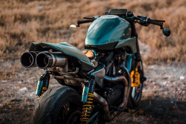 The clean uncluttered front end uses the LED Daymaker™ headlamp from a Harley-Davidson® Breakout®. The bikes lines and design are uninterrupted by the TFT flat panel dash taking nothing away from the design. The bike also boasts a collection of custom hand and foot controls, paired with the hand finished Alcantara seat unit. Additional bespoke bodywork incorporates the twin air intakes complementing the stance of the bike. The exceptional Sterling Green paintwork supported by acres of powder coating, add a luxury feel to the final presentation.